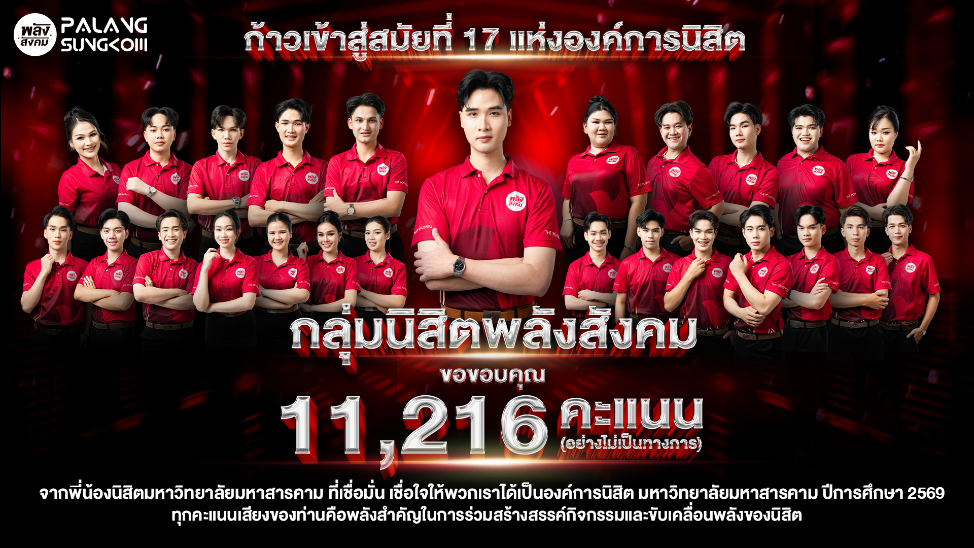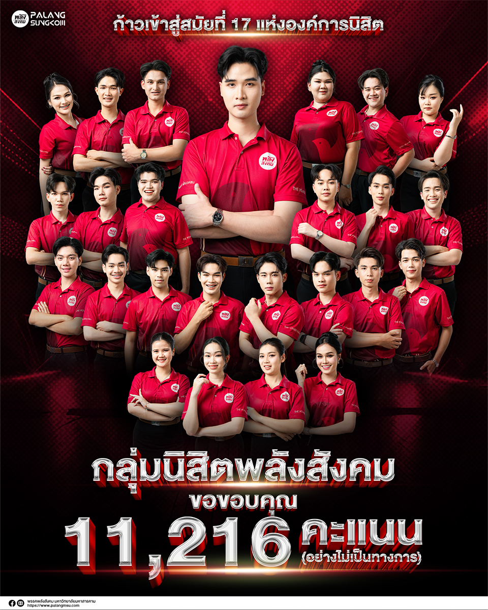 Read More: “พลังสังคม” คว้าชัยชนะด้วย 11,216 คะแนนเสียง ก้าวสู่สมัยที่ 17 แห่งองค์การนิสิต มหาวิทยาลัยมหาสารคามกลุ่มนิสิตพลังสังคม ขอขอบ…