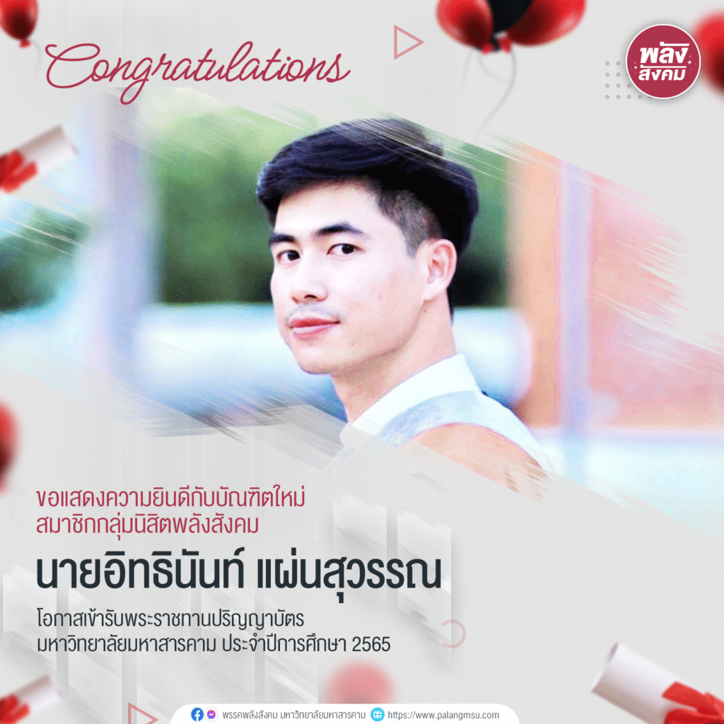 ขอให้พี่บัณฑิตบัณฑิตทุกท่านประสบความสำเร็จในเส้นทางที่เลือกเดิน และอย่าลืมนำความรู้ที่ได้ไปพัฒนาสังคมให้ดียิ่งขึ้น ขอเป็นกำลังใจให้ทุกก้าวย่างในอนาคต