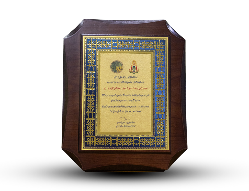 กลุ่มนิสิตพลังสังคม ได้รับโล่ประกาศเกียรติคุณจากจังหวัดมหาสารคามเป็น “องค์กรที่ทำคุณประโยชน์ต่อเด็กและเยาวชนของจังหวัดมหาสารคาม”